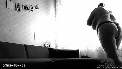 round granny with saggy enormous boobs and chubby arse spreads cunt